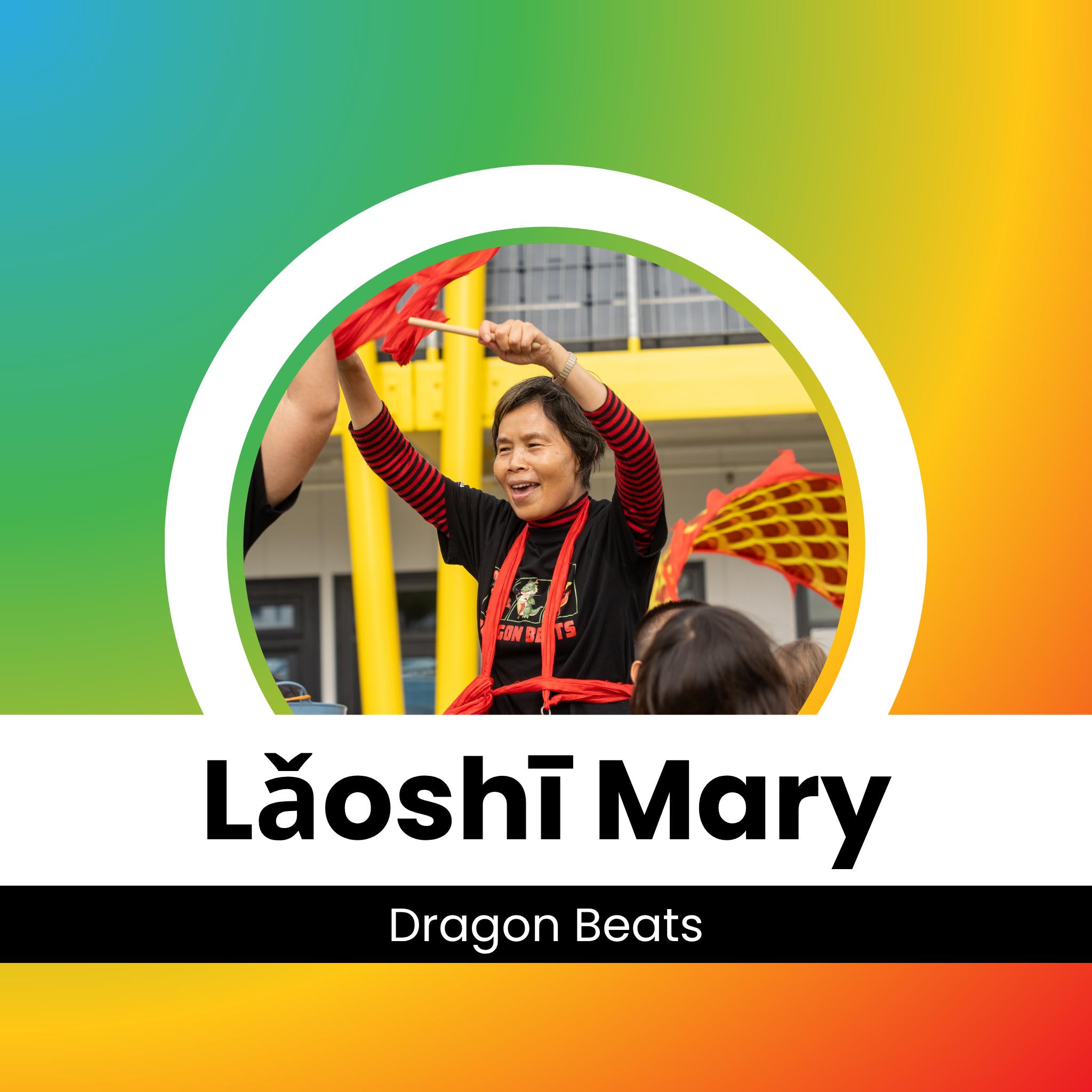 Mary is a Dragon Beats coach who works alongside three other Dragon Beats coaches to deliver engaging school taster sessions and cultural performances. She is passionate about sharing Chinese culture and loves creating fun, inclusive experiences that introduce students to dragon dance, drumming, and movement. A familiar and friendly face around the SportHub Community Centre, Mary is a positive and active community member who is always happy to support events and programmes.